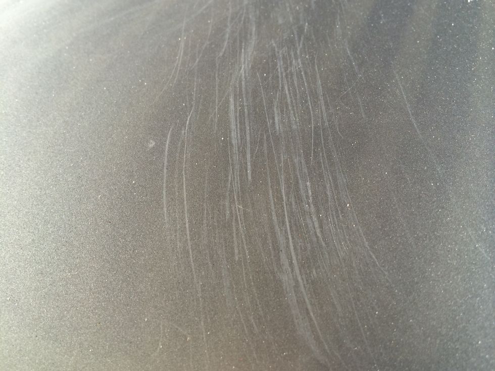 上記は見づらいですが、液体コンパウンドをスリキズ箇所に付属の固いスポンジで磨いた後に、ふき取っていない写真です。