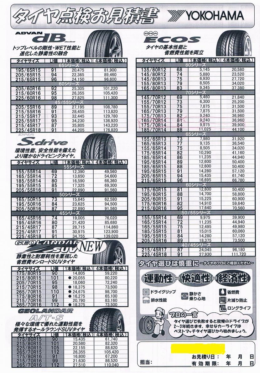 見積はもらったその場で判断せずに、1度自宅になどに持ち帰らないと、パソコンとか持ってGSに行く人は少ないでしょうし、また、タイヤ交換は予約しないとかなり待たされることもあったりしますので、注意が必要です。
