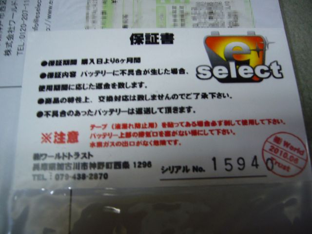 バッテリーは、宅配ドライバーとかが配送時に落としますと、中が割れて液漏れとかを起こすパッケージの構造になっています。