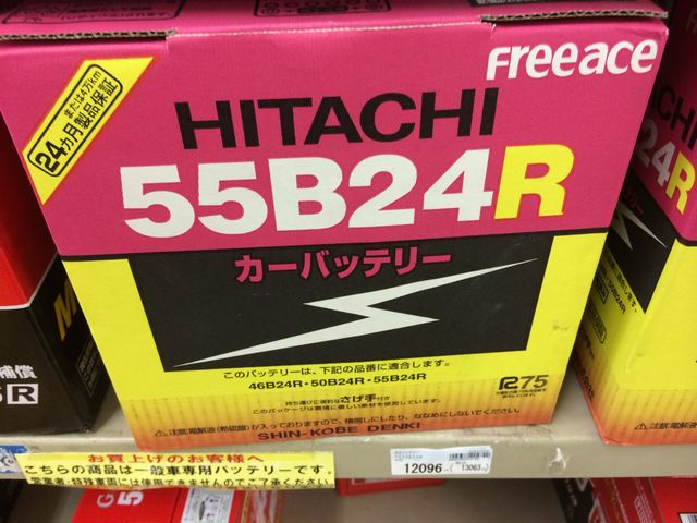 上記は、ホームセンターナフコで販売されている日立製バッテリーで、¥12,000超えです。