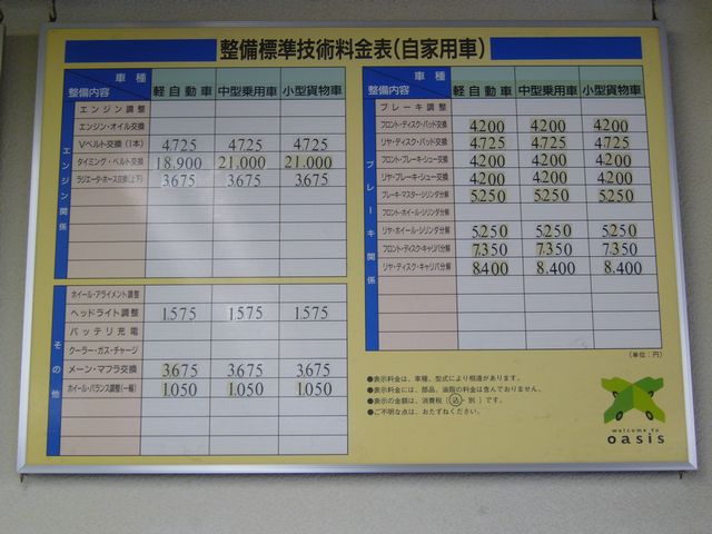 どうしても気になっていても、なかなかお電話して聞くのがちょっと・・・という人も少なくないと思います。私は数台自動車を持っていますので、毎回ズバズバ質問したりしていますが、説明も難しいので、ズバリ店内の作業工賃一覧も撮影しておきました。
