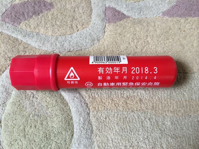あとはこの発煙筒を車検日当日に助手席のものと差し替えるだけですよ。 小学生でも交換できます。