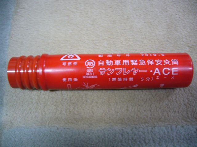 意外とこの発煙筒は、なかなか売っているお店をみつけにくいのですが、オートバックスセブンなどに¥567で販売していたりします。