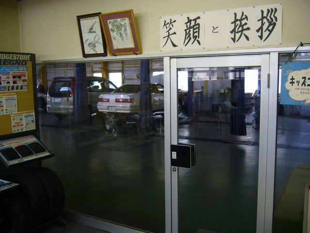 待合席とピット(整備工場)の仕切りはガラスですので、見える安心感もあります。