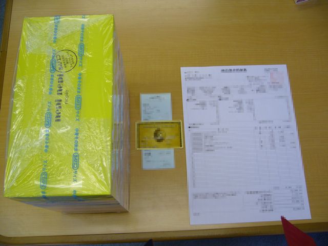 上記の写真のように、アメックスのクレジットカードが手数料なしで利用できました。 右側の白いA4サイズの紙は今回の車検の作業明細の書かれた納品書です。整備記録となりますので、保存してください。 左にあるティッシュ5箱は景品です。