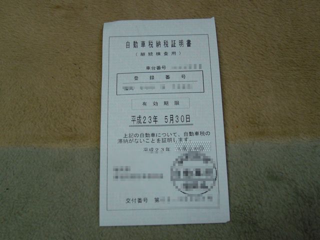 私の場合、6月に車検を受けようと考え、まず証明書を入手したかったので、福岡陸運局に出向きましたが、「平成26年6月1日まで有効」と有効期限が記載されていましたので、たぶん出直ししないといけないでしょう。