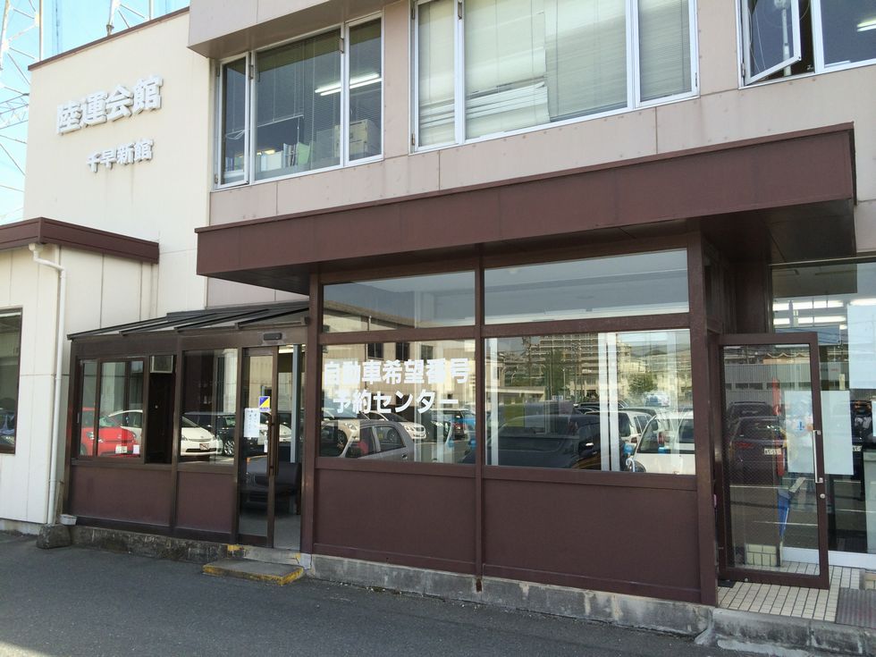 この陸運会館に入り、2階の自動発券機まで行きます。駐車場は広いのですが、建物に近いほど埋まっています。