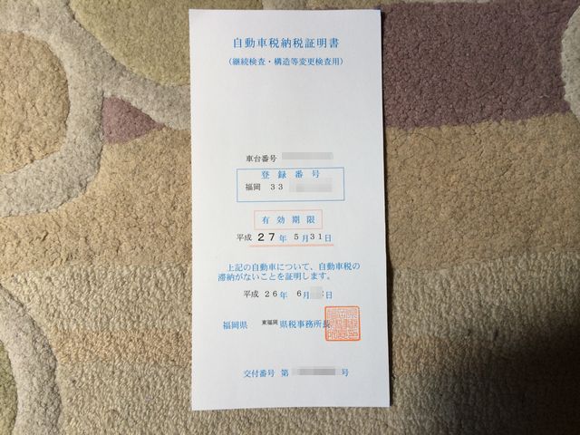 ちなみに、格安車検とかに車を出す人の場合、「そうだ5月にネットでオンラインで決済したので、自動車税納付証明書がない」となり、車検を受けるお店とかに相談し再発行してもらうことになります。